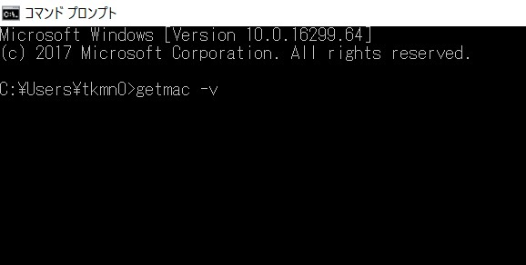 コマンドプロンプトを開き、「getmac-v」と入力します。